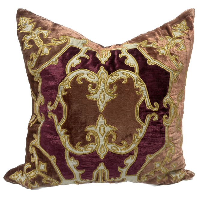 Renaissance Pattern Ebroidered Terracotta/Burgundy Velvet Throw Pillow