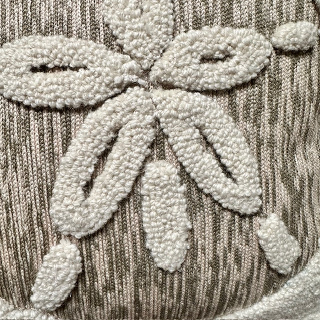 - Hooked pillow features neutral toned sand dollar cutout front panel, solid white velvet backing and zipper closure with removable polyester pillow insert