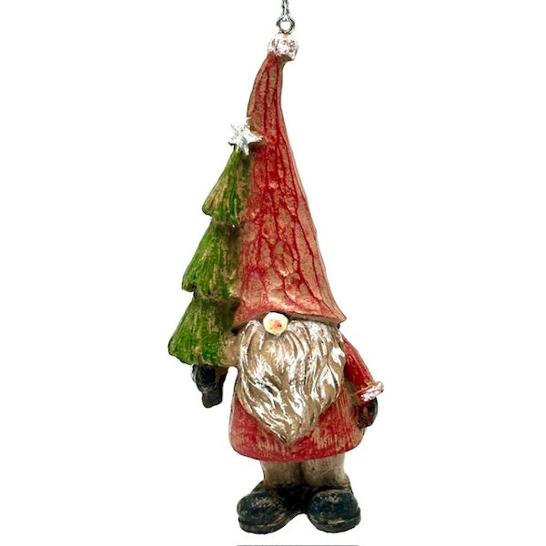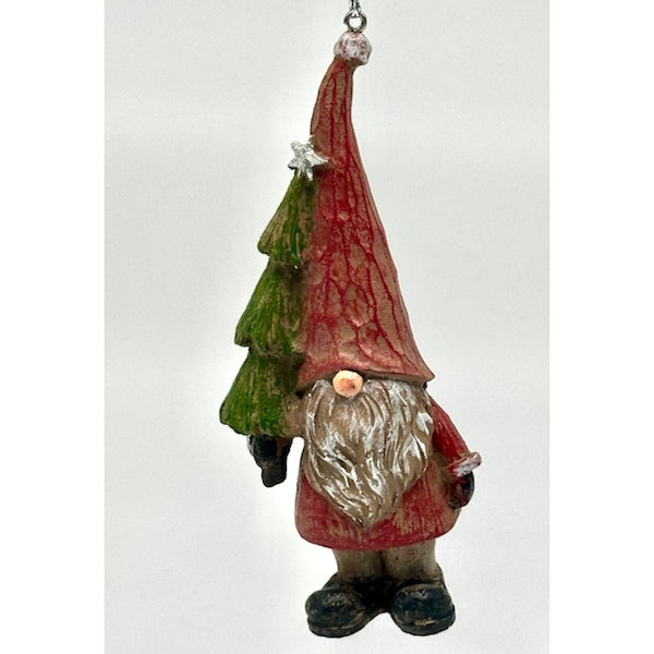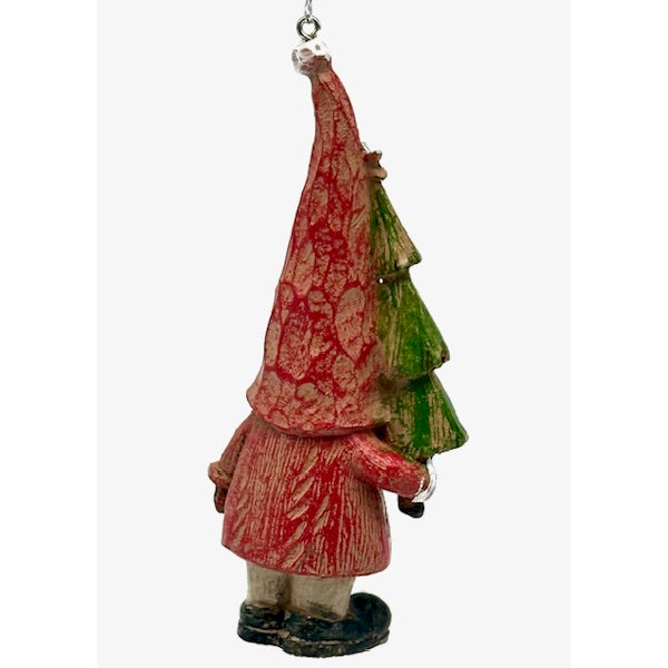This charming ornament features a rustic carved-look for a touch of nostalgia. The woodland santa gnome design adds a whimsical element to any holiday decor. Handcrafted with intricate details, it's the perfect addition to your Christmas tree.