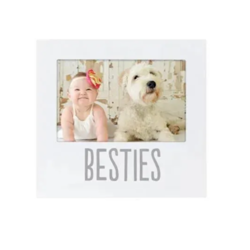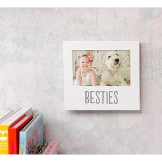 This keepsake photo frame showcases a loving photograph of your little one with a charming "Besties" sentiment printed in easy-to-read grey lettering. The attached wall hanger and folding easel backing allow for multiple display options.