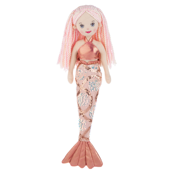 - Shimmer Cove Mermaid Gemma is new to our Mermaid Collection! She has soft pink colored hair and blue eyes. She's wearing a shimmery blush sequin mermaid tail, perfectly coordinated with a metallic rose colored halter top and fin.