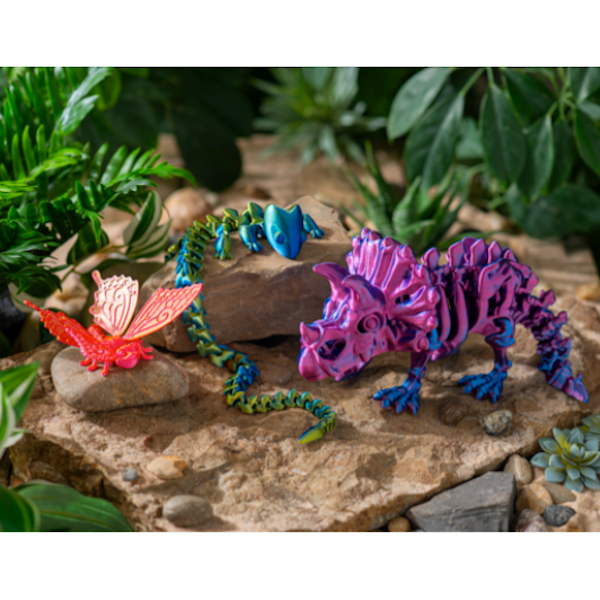 Discover an amazing world of fierce and friendly creatures! Each Shimmer Creature is 3D-printed and has an articulated body, so you can pose and play with them for hours.