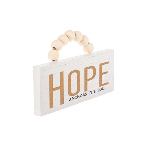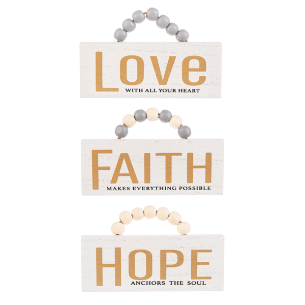 - 3 styles to choose from: "LOVE with all your heart," white and gold with grey beads, "FAITH makes everything possible," white and gold with white and grey beads, and "HOPE anchors the soul," white and gold with white beads