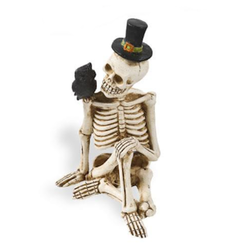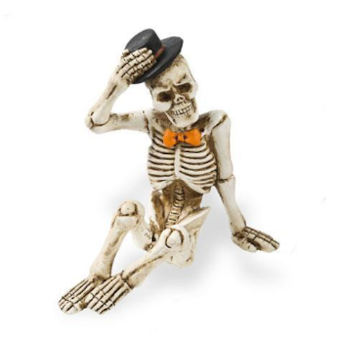 - 4 skeleton figurines in assorted poses and styles, sold individually