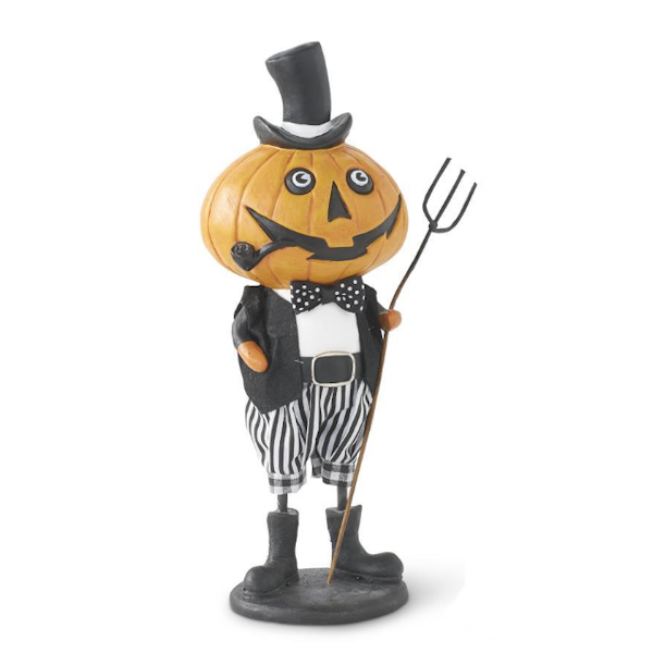 These Standing Pumpkin People are the perfect addition to your Halloween decor. Their black, white, and orange colors add a whimsical touch, while their big grins and elaborate fancy costumes bring a sense of fun and joy. Add some festive charm to your home with these adorable pumpkin characters, each sold seperately