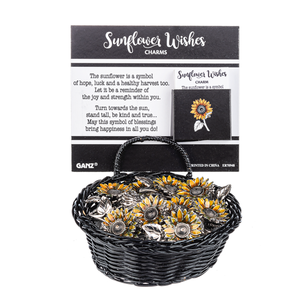 The Sunflower Wishes Charm comes with a card that reads "The Sunflower is a symbol of hope, luck and a heathy harvest too. Let it be a reminder of the joy and strength within you. Turn towards the sun, stand tall, be kind and true... May this symbol of blessings bring happiness to you!"
