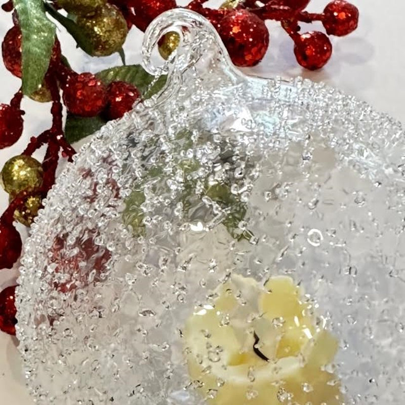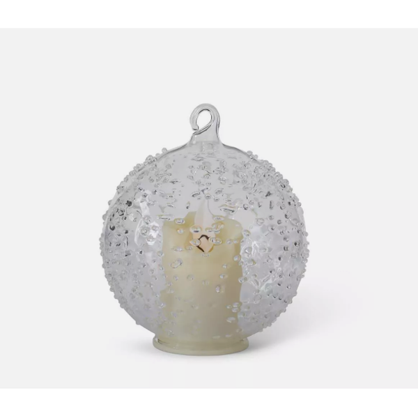Textured Glass Globe LED Flicker Flame Ornament w/Timer