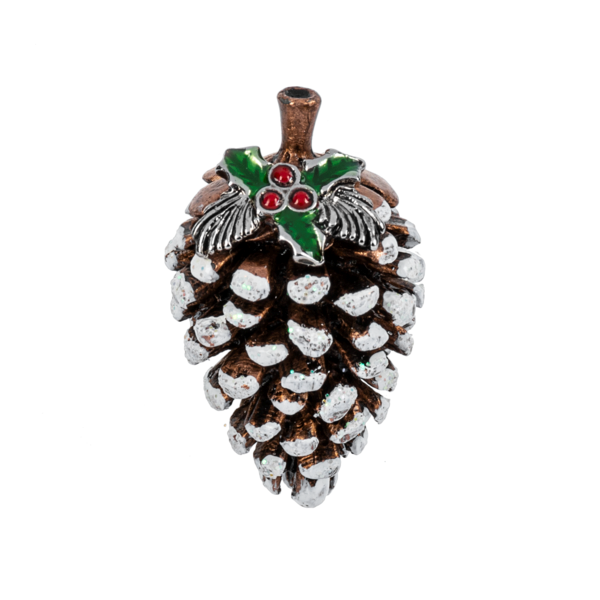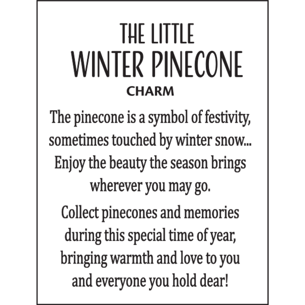 - The Ganz Little Winter Pinecone Charm made of zinc includes a sentiment card that reads "The pinecone is a symbol of festivity, sometimes touched by winter snow... Enjoy the beauty the season brings wherever you may go. Collect pinecones and memories during this special time of year, bringing warmth and love to you and everyone you hold dear!"