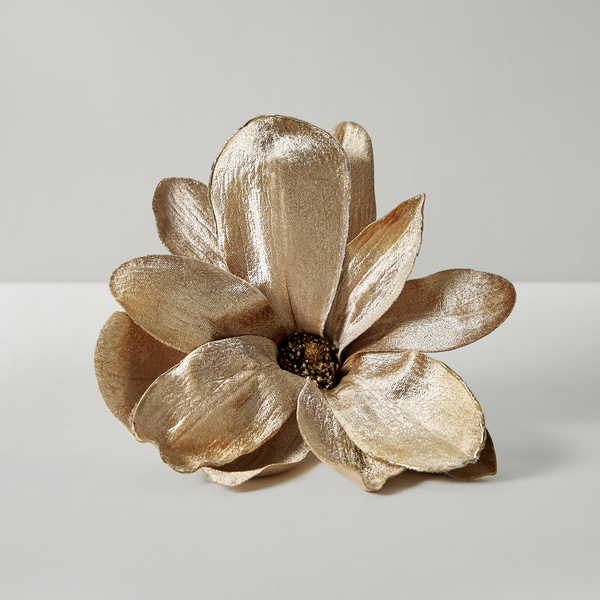 Velvet Magnolia Clip Ornament, Champagne Gold