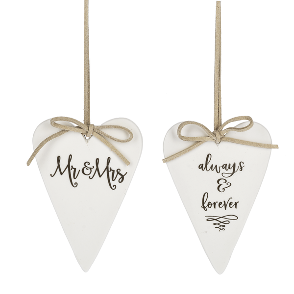 Celebrate your special bond with our elegant Wedding/Love Heart Ornament, available in two refined styles: "Mr & Mrs" or "Always & Forever." Each sold separately, these ornaments bring a timeless touch to any home or wedding décor. Crafted with care, they make a meaningful keepsake to commemorate love and commitment. Perfect as a gift or a cherished memento, these ornaments offer a sophisticated way to honor your lasting connection.