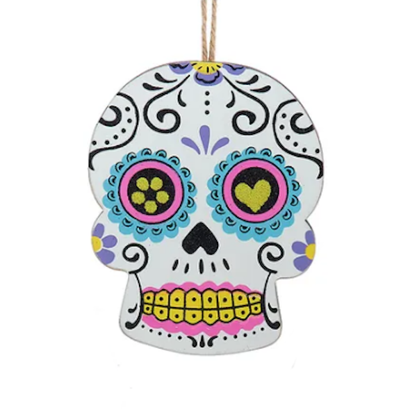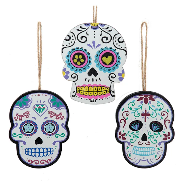 - These Wooden Day of the Dead Skull Ornaments from Kurt Adler are a vibrant and culturally rich addition to your holiday decor that celebrates the traditions of the Dia de los Muertos (Day of the Dead). Each are beautifully hand-painted with intricate designs and vibrant colors, capturing the essence of this Mexican holiday. Crafted with meticulous attention to detail, this assortment showcases three distinct skull designs, each adorned with colorful flowers, intricate patterns, and symbols representing the celebration of life and remembrance of loved ones who have passed away. These ornaments bring the vibrant and festive spirit of Dia de los Muertos to your holiday decorations. Whether you have a deep appreciation for cultural diversity, a love for Mexican traditions, or simply appreciate the vibrant and colorful designs, the Wooden Day of the Dead Skull Ornaments are the perfect choice. They bring a touch of cultural richness and holiday celebration to your home, making them a cherished part of your holiday traditions and a source of festive joy for family and friends.